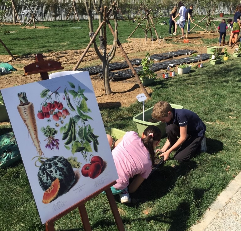 Quelles sont les espèces qui ont été plantées par les enfants ? Des aromatiques en pagaille, des légumes tels que l’aubergine, l’épinard, le radis, la tomate, le concombre, la carotte, le chou, le poivron et le poireau, mais aussi du melon, de la fraise, etc. Les fleurs amis des légumes – capucines, cosmos, œillets d’Inde et soucis –, alliés naturel de la lutte contre les pucerons et les piérides, ont également été très prisés.
